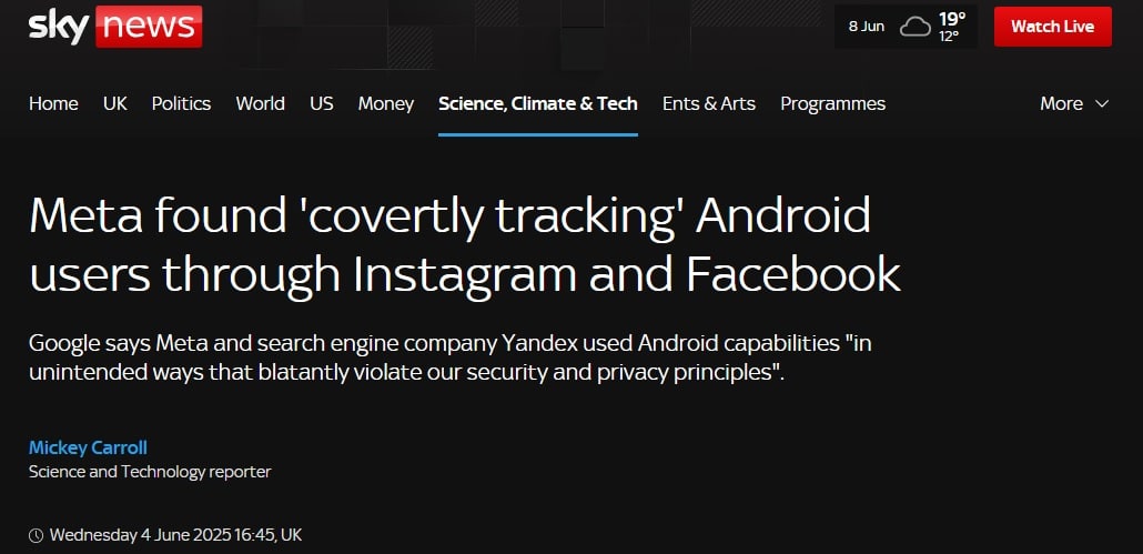 Now, in the present day, Meta (the parent company of WhatsApp) has been accused of covertly tracking Android users via Instagram and Facebook (Sky News, 4 June 2025).